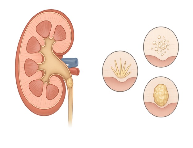 İdrarın içerisinde çeşitli mineraller bulunur. Bunlardan bazılarının, idrarın içindeki yoğunluğu arttıkça kristal oluşumu başlar. Daha sonra bu kristallerin küme haline gelip birleşmesiyle taş oluşumu gerçekleşir.