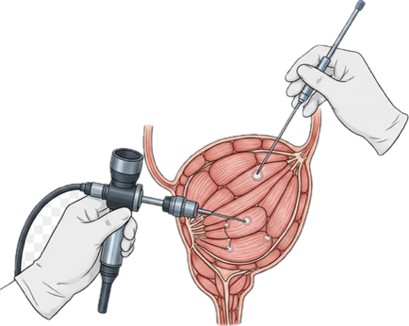 Mesane içi botoks uygulaması, nörojen mesane, aşırı aktif mesane ve ağrılı mesane sendromlarını tedavi etmek için kullanılabilir. İşlem genellikle lokal anestezi ile yapılır ve özel bir iğne yardımıyla mesanenin yirmi ila otuz noktasına botoks enjeksiyonu yapılır.