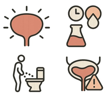 Sık sık idrara çıkma, gece idrar için uyanma, ani idrar yapma ihtiyacı, idrar yapmakta zorlanma ve idrar yapma süresinin uzun olması, idrar depolama belirtileridir.